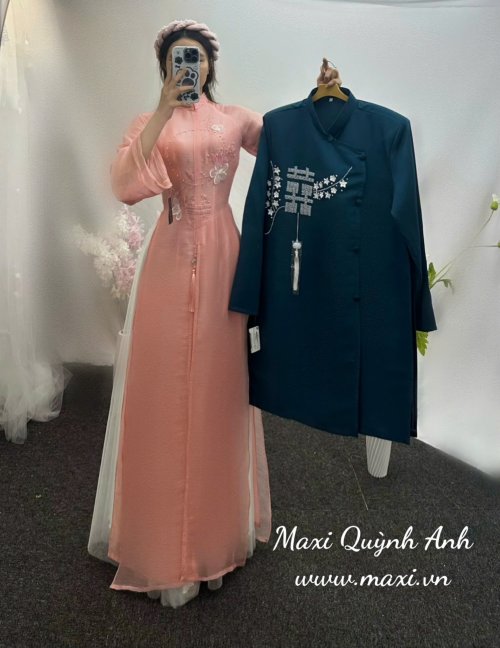 🌸 Sự kết hợp hài hòa giữa hồng ngọt ngào và xanh quyền lực mang đến hình ảnh cặp đôi hoàn hảo – vừa lãng mạn vừa trang trọng. Đây chắc chắn là lựa chọn tuyệt vời cho lễ ăn hỏi, đám cưới hoặc chụp ảnh kỷ niệm.