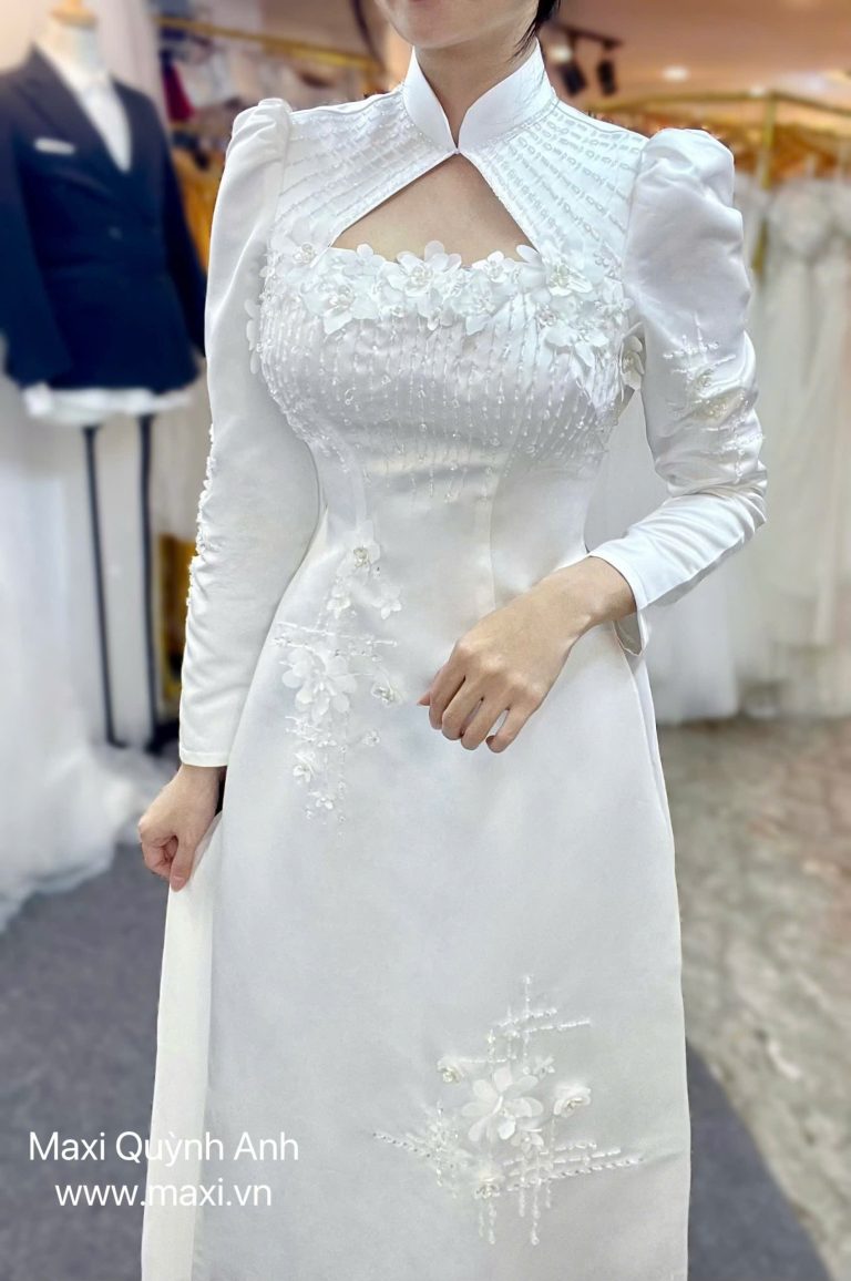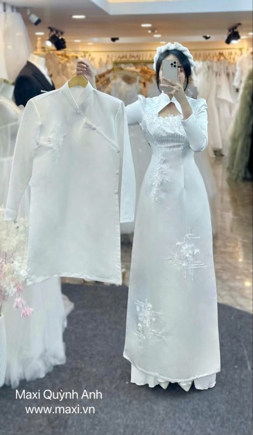 Cặp áo dài cưới trắng mang vẻ đẹp tinh khôi – trang nhã – sang trọng, phù hợp cho ngày trọng đại của đôi uyên ương.