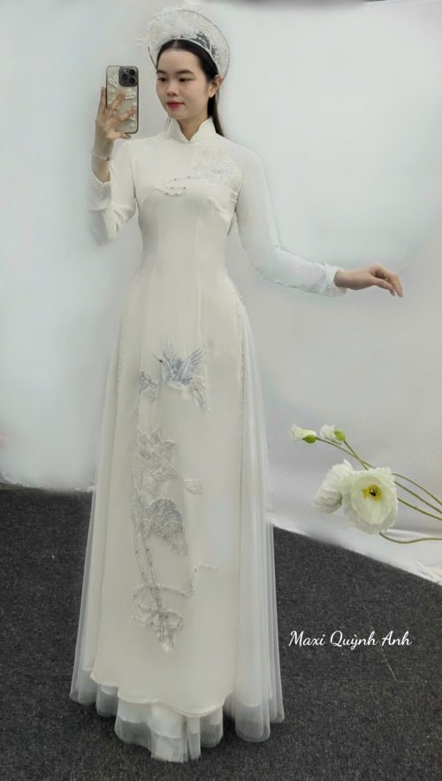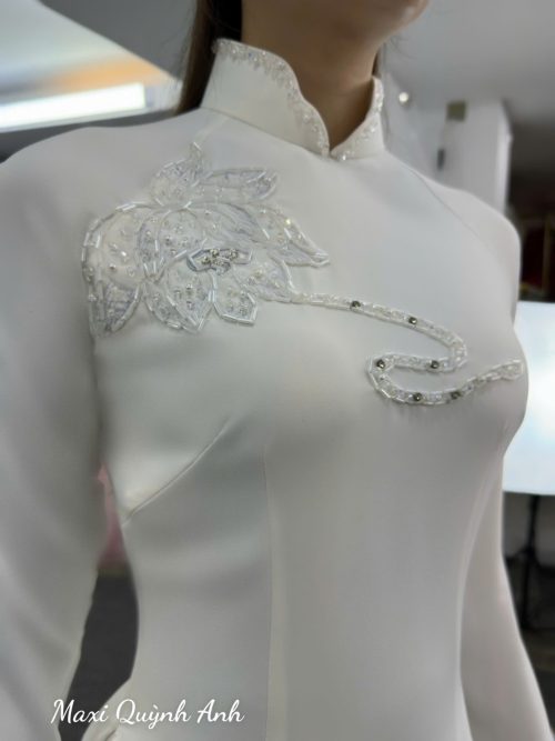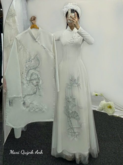 Sắc trắng tinh khôi của cặp áo dài “Song Long Tinh Khôi” là biểu tượng cho tình yêu trong sáng, thuần khiết và sự khởi đầu viên mãn. Đây là sự lựa chọn hoàn hảo cho các cặp đôi yêu thích phong cách sang trọng, thanh lịch và mang đậm nét truyền thống.