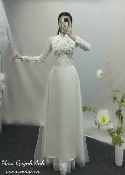 Cặp áo dài cưới trắng mang vẻ đẹp tinh khôi – sang trọng – thanh lịch, là lựa chọn hoàn hảo cho ngày trọng đại.