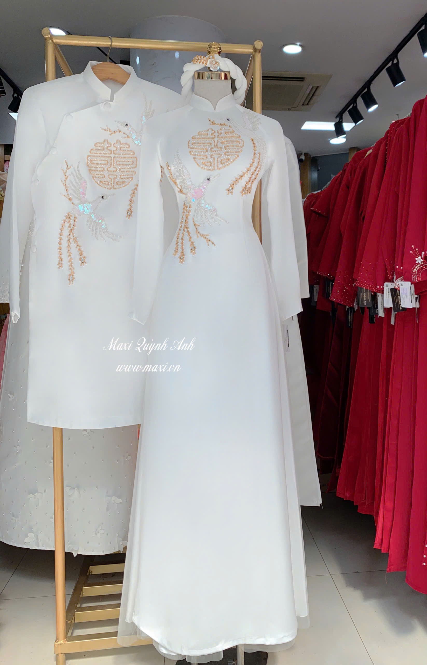 - Chất liệu lụa cao cấp mềm mại, thướt tha, mang lại sự thoải mái và tôn lên vóc dáng hoàn hảo cho cả dâu và rể.