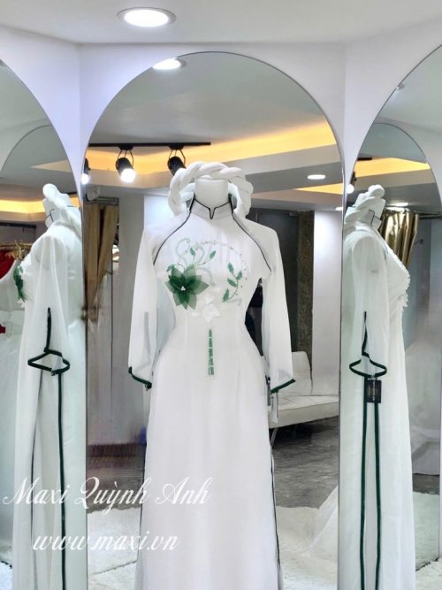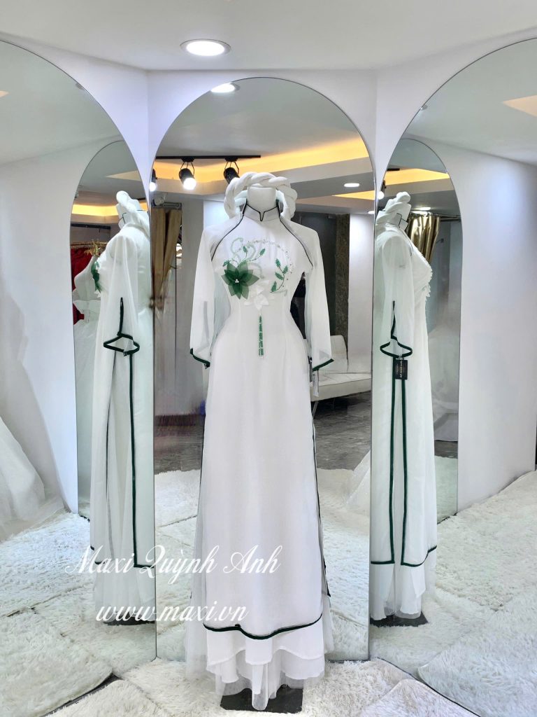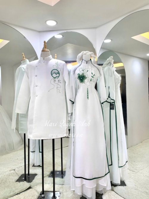 Cặp Áo Dài Cưới viền xanh cổ mới hiện đại (ADTX)