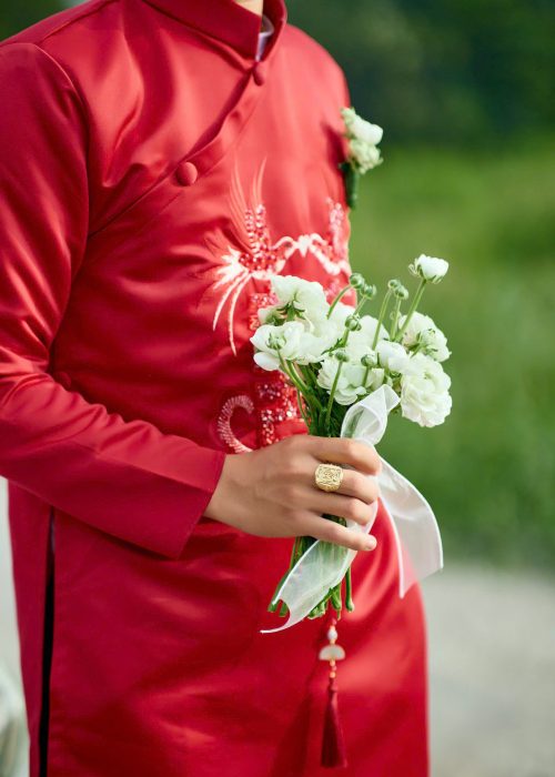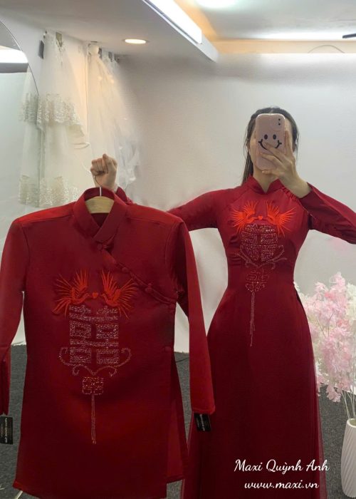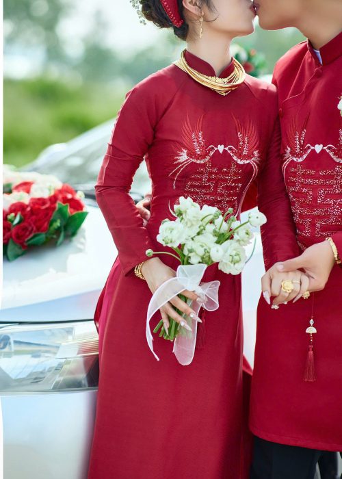 ÁO DÀI CƯỚI ĐỎ “LONG PHỤNG SUM VẦY” là biểu tượng của tình yêu vĩnh cửu, mang đến vẻ đẹp truyền thống, sang trọng cho ngày trọng đại của đôi bạn.