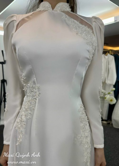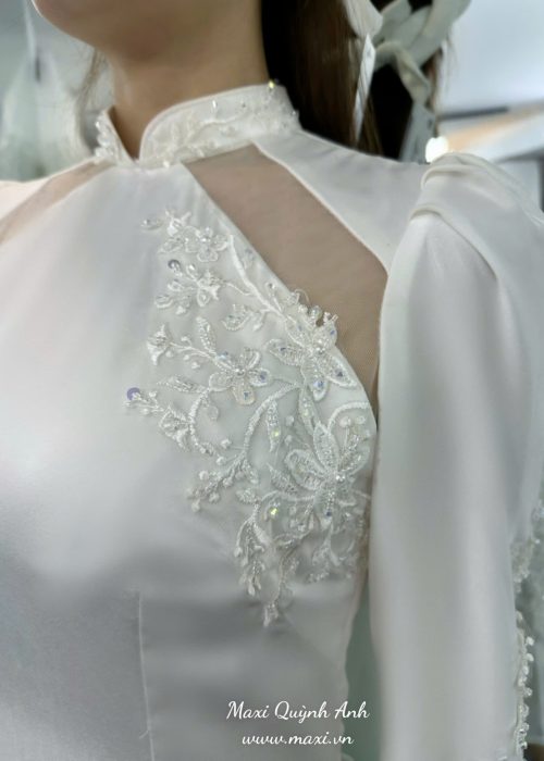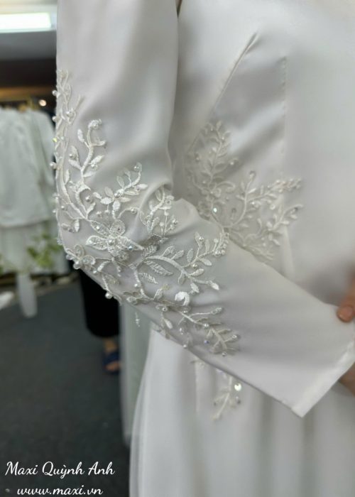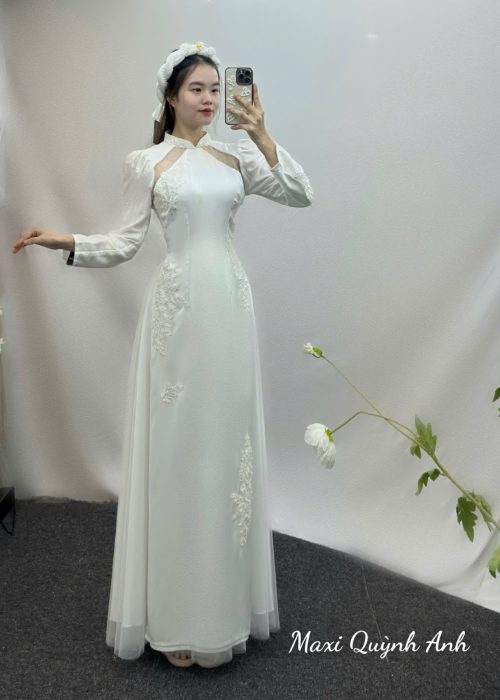 Cặp áo dài cưới trắng mang đến vẻ đẹp tinh khôi và thanh lịch, phù hợp cho các nghi lễ trọng đại.
