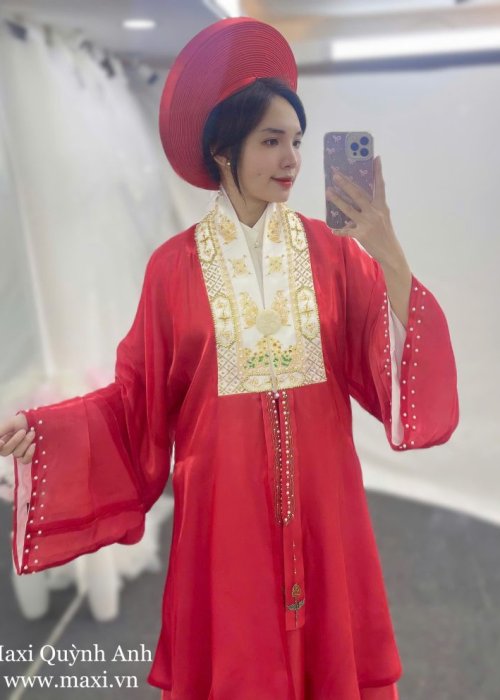 Áo dài được làm từ chất liệu vải cotton, mềm mại, thoáng mát và có độ rũ tự nhiên, tạo cảm giác thoải mái khi di chuyển. Sắc đỏ rực rỡ và nổi bật, dễ dàng thu hút mọi ánh nhìn và giúp bạn tỏa sáng trong bất kỳ sự kiện nào.