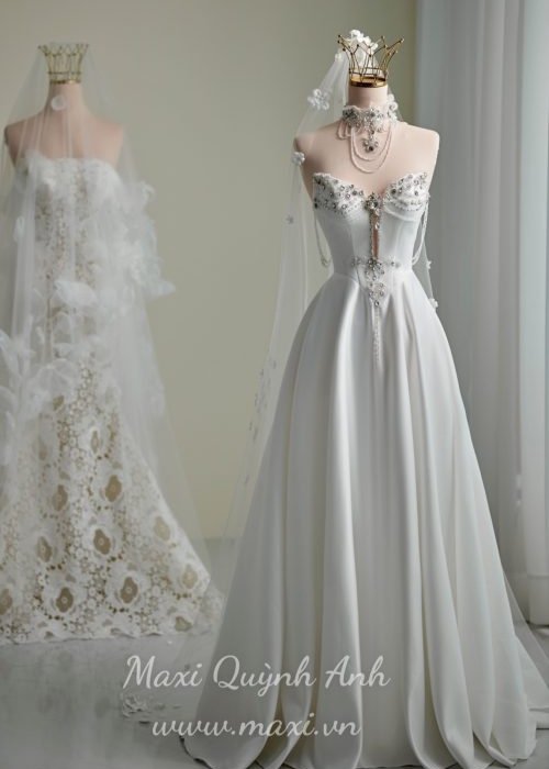 Maxi Quỳnh Anh cung cấp váy cưới mới 100% chất lượng tốt nhất, được may thủ công với chất liệu ngoại nhập, các sản phẩm đều được may gia công với 4 lớp, mang lại độ bền và sự sang trọng nhất.