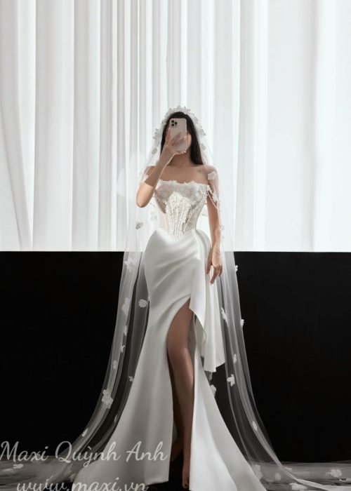 Đầm Cưới Body Cao Cấp Phối Tay Ren Hoa