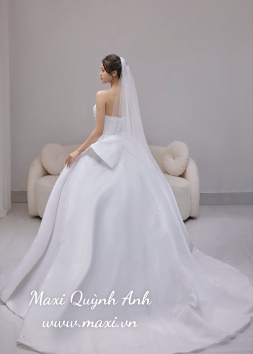 Đầm Cưới Cao Cấp Đính Hạt Nơ Lưng