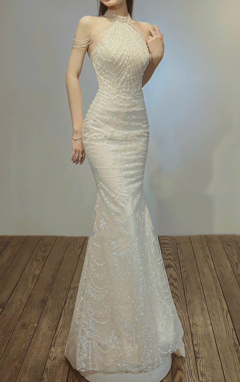 Đầm Cưới Đuôi Cá Cổ Yếm