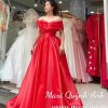 Đầm Cưới Hồng Thiết Kế Trễ Vai Đính Hoa