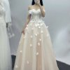 Thân đầm được trang trí bằng các chi tiết 3D hình nơ hoặc cánh hoa lớn, được đính kết dọc hai bên eo, tạo sự mềm mại và nữ tính. Từ các chi tiết nơ này có những sợi dây dài rủ xuống, tăng thêm vẻ bay bổng, lãng mạn cho chiếc đầm. Váy có vẻ được làm từ chất liệu vải cứng phom, ngoài ra phụ kiện đi kèm có thể là một đôi giày cao gót mũi nhọn cùng tông màu trắng.