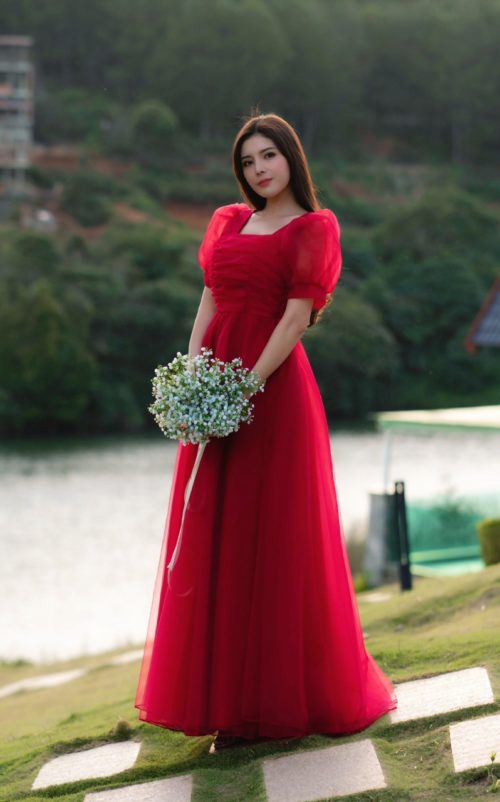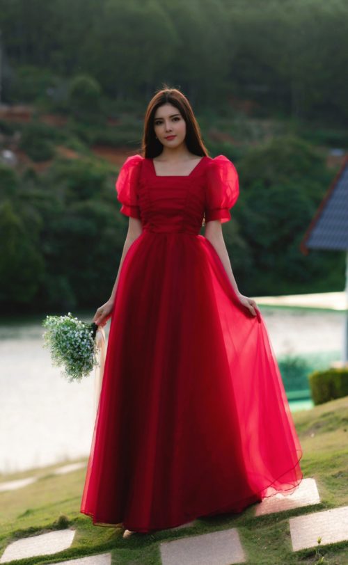 Đầm Dạ Hội Cổ Vuông Lưới