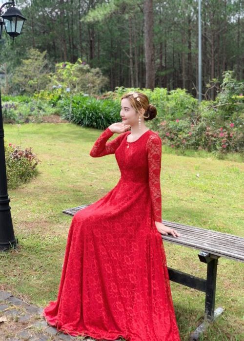 Đầm Dạ Hội Ren Đỏ Hở Lưng Đuôi Dài