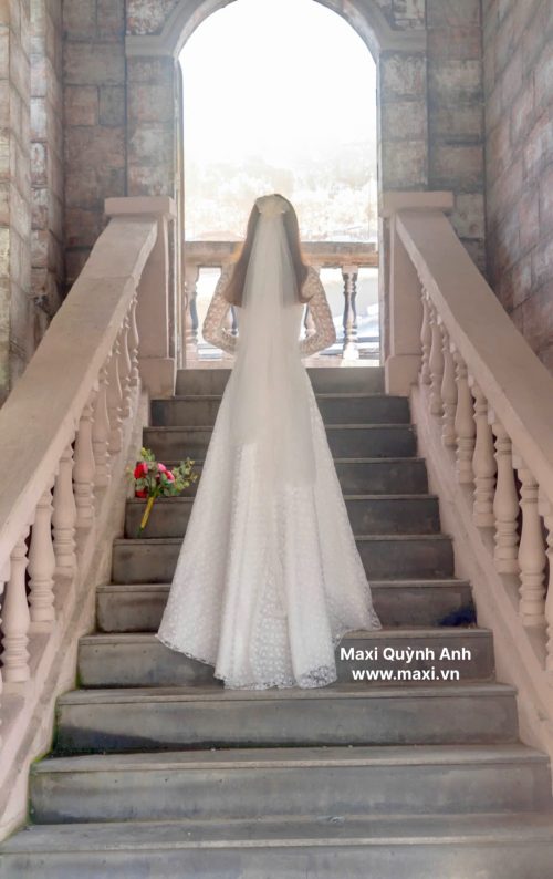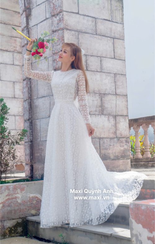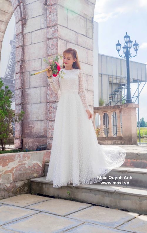 Đầm Dạ Hội Tay Dài Phối Ren Cao Cấp
