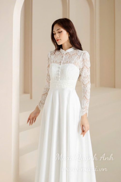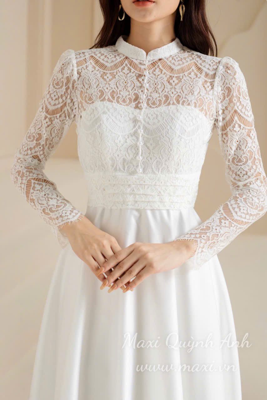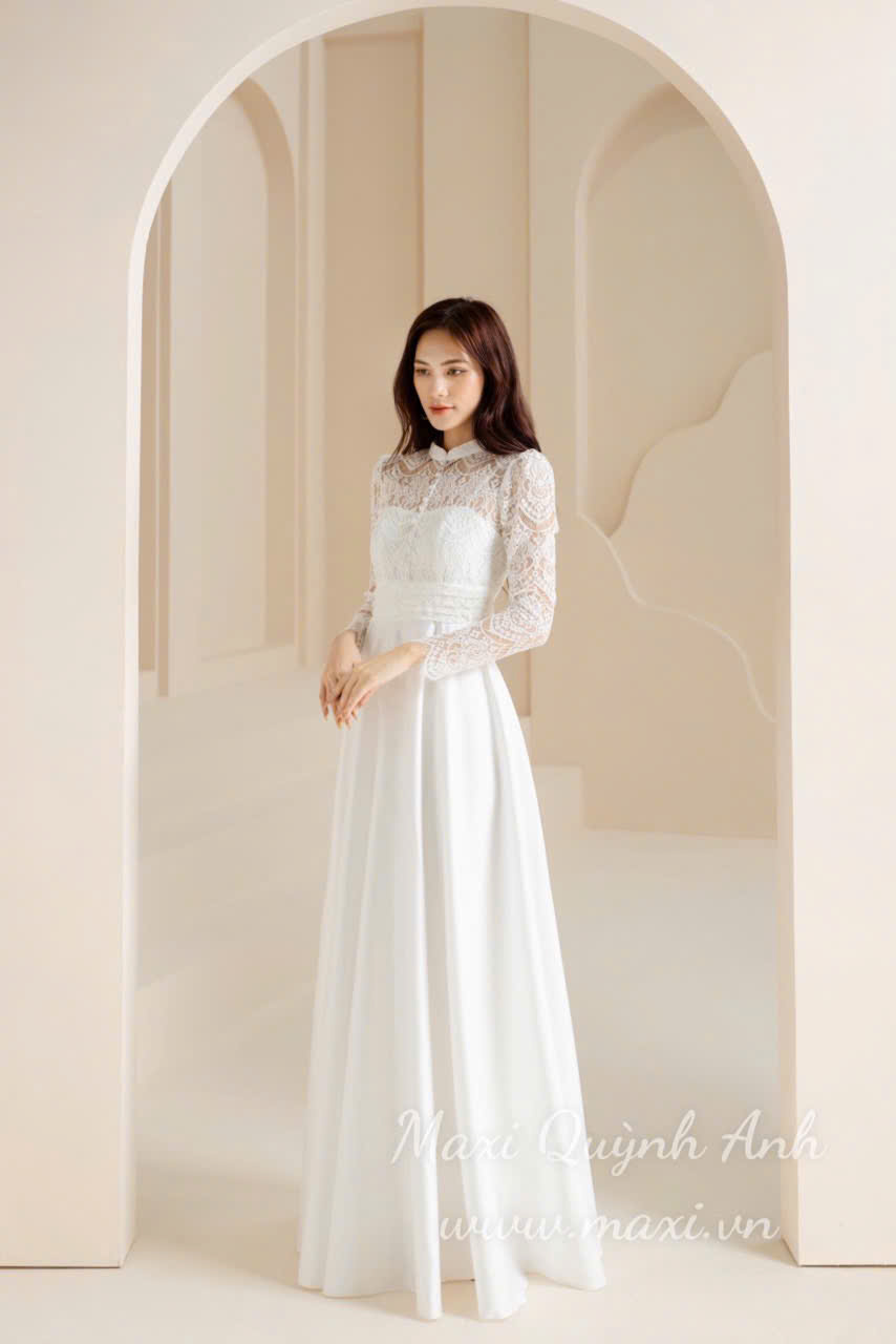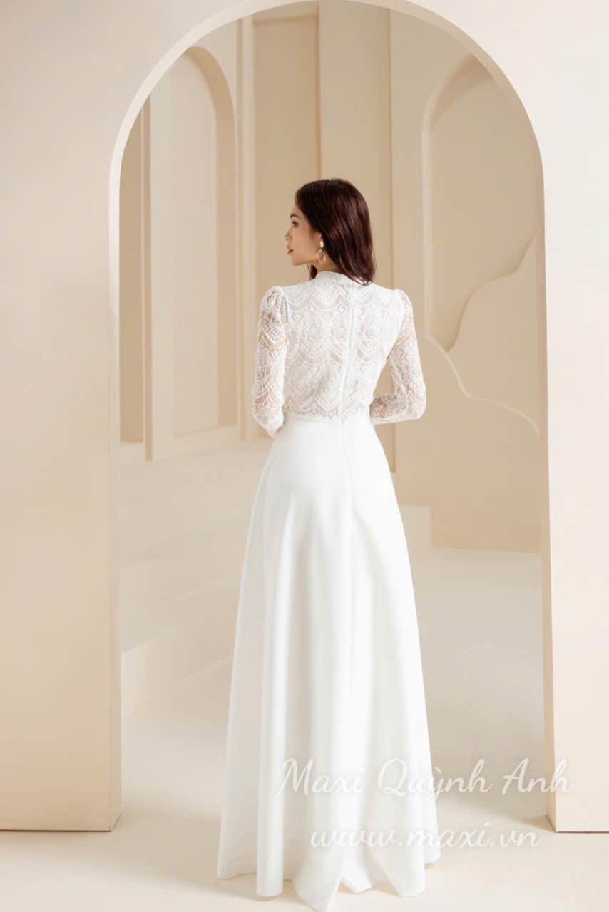 Đầm Dạ Hội Tay Dài Phối Ren Sang Trọng