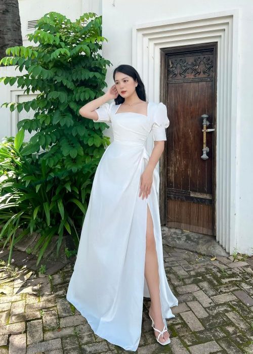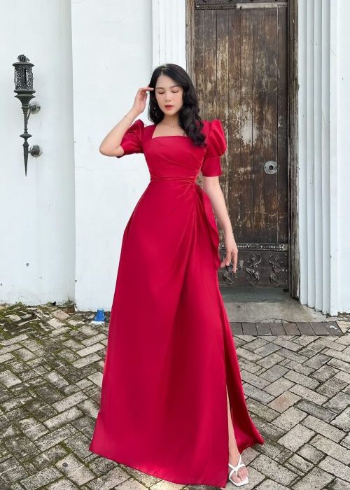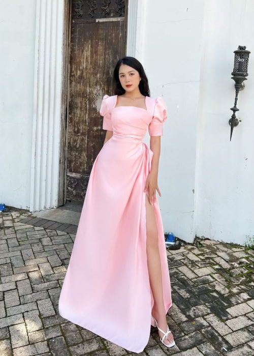 Đầm Dạ Hội Tay Phồng Cổ Vuông Thiết Kế Xẻ tà