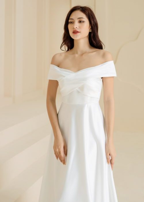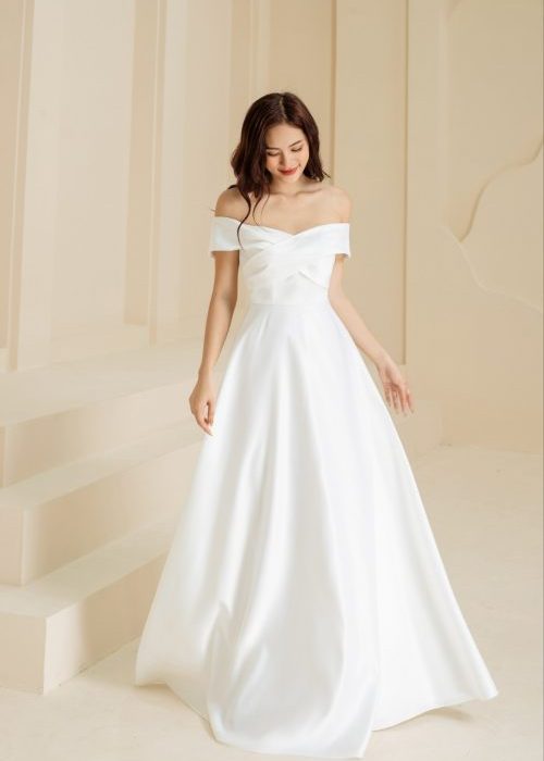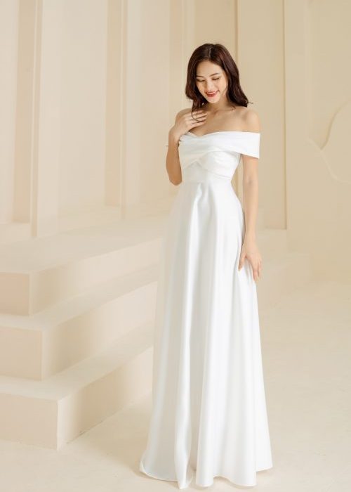 Đầm Dạ Hội Trắng Trễ Vai Sang Trọng