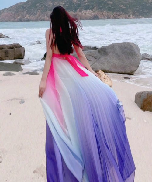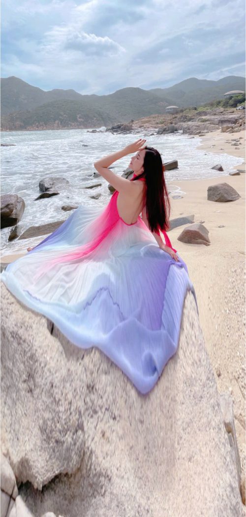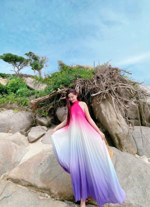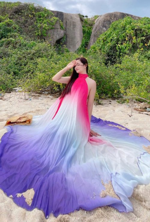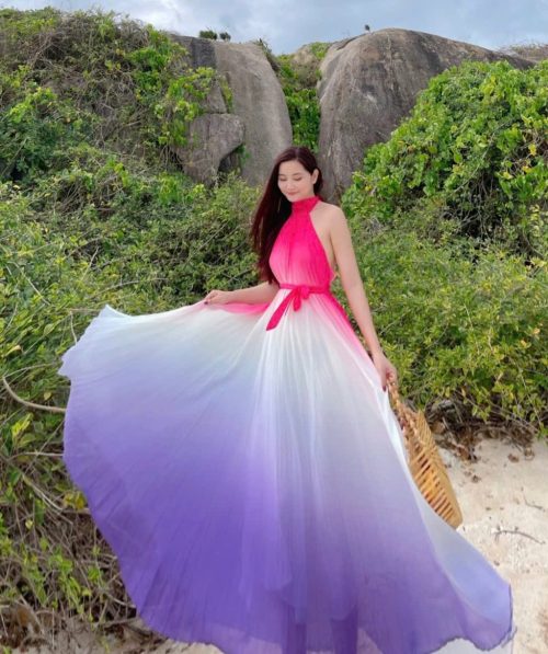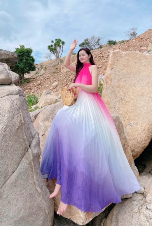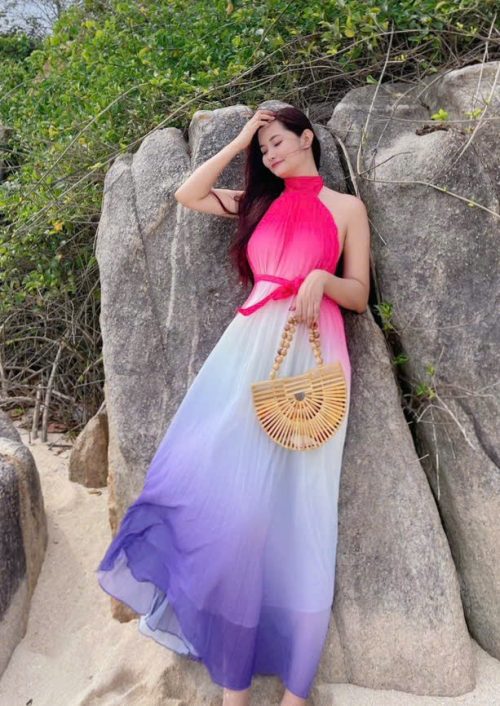 Đầm Maxi Cổ Yếm Loang Màu Nhẹ Nhàng