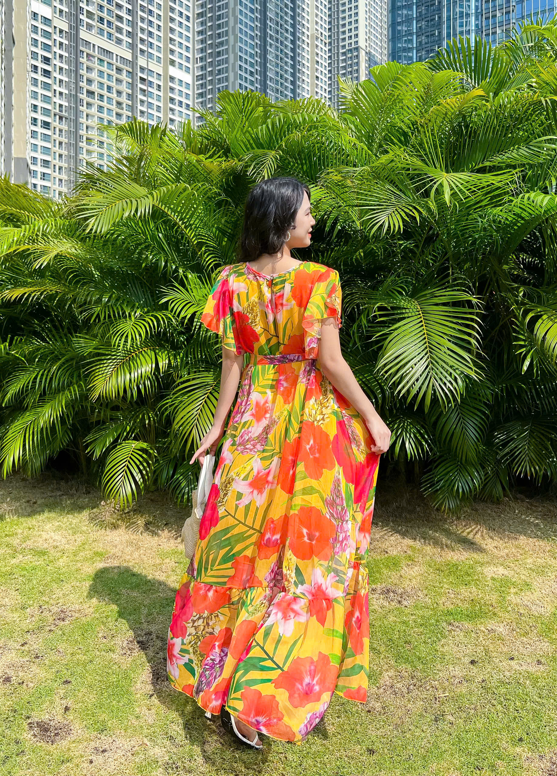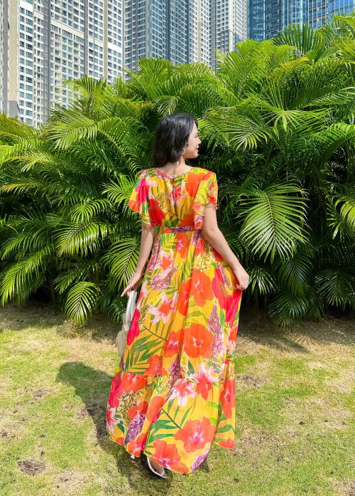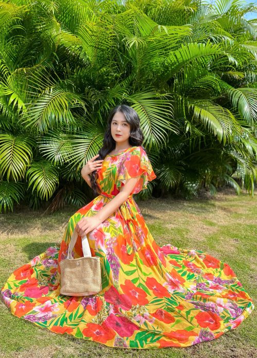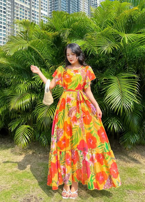 Đầm Maxi Hoa Form Suông Phối Dây Thắt Eo