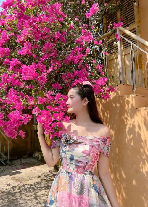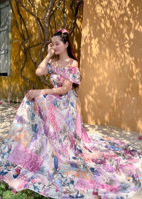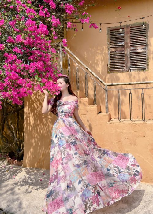 Đầm Maxi Hoa Trễ Vai Phong Cách Tiểu Thư