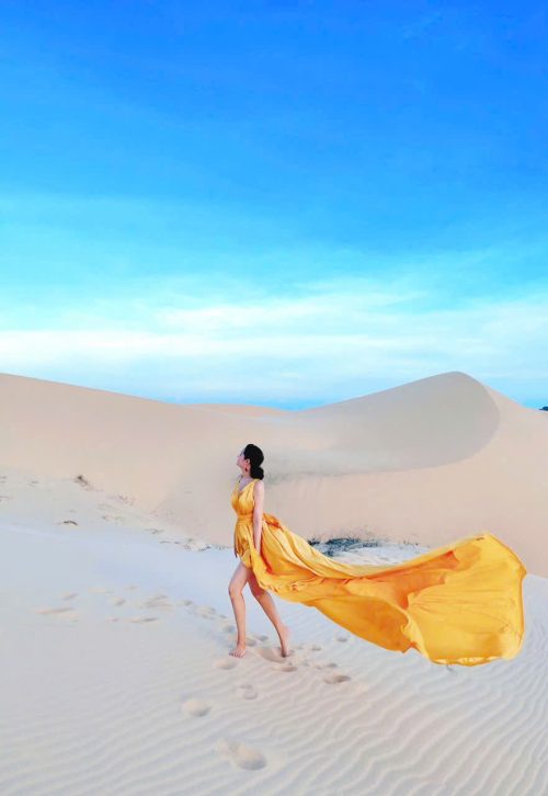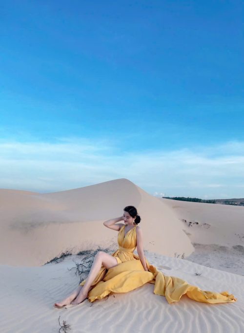Đầm Maxi Lụa Vàng Tà Dài