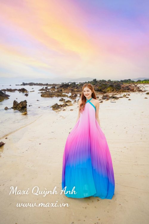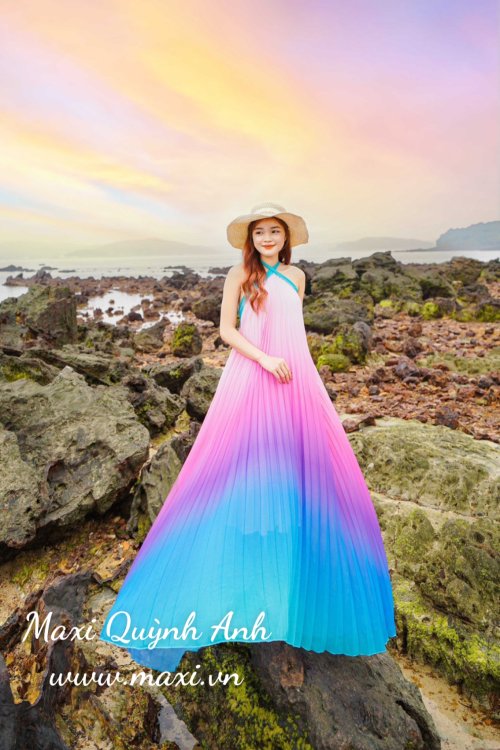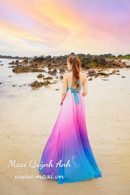 Đầm Maxi Phối Màu Nhẹ Nhàng