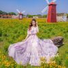 Đầm Maxi Trắng Tầm Ánh Tay Con Phối Bèo Tùng