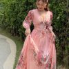 Đầm Maxi Trễ Vai Tầm Ánh Hồng Nhẹ Nhàng