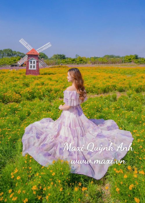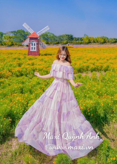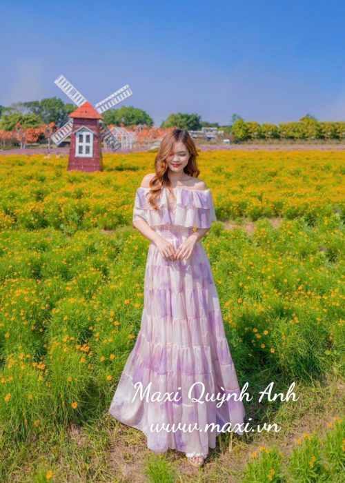 Đầm Maxi Trễ Vai Tầm Ánh Tím