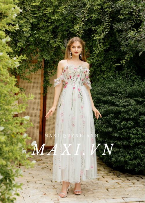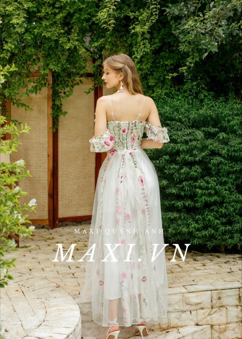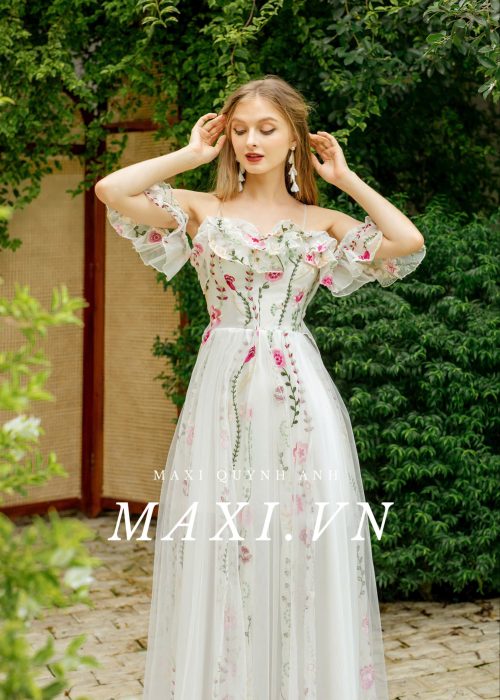 Đầm Maxi Voan Hoa Trễ Vai Tiểu Thư Tao Nhã