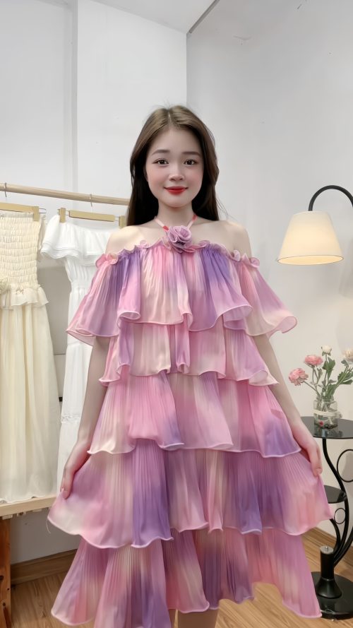 Maxi Thiết Kế Phối Tầng Loang Màu Cao Cấp