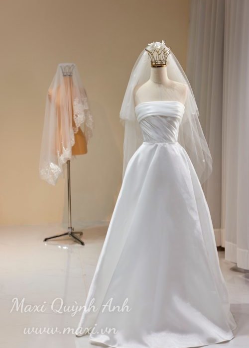 Chất liệu vải cao cấp, đường may tỉ mỉ và form dáng chuẩn, giúp tôn trọn vóc dáng của cô dâu trong ngày trọng đại. Đây không chỉ là một chiếc váy cưới, mà còn là tuyên ngôn phong cách cá nhân để nàng thật tự tin sải bước trong ngày hạnh phúc nhất.