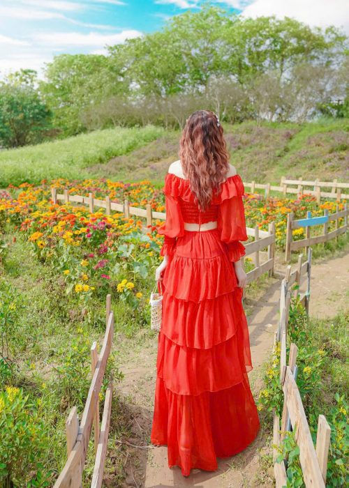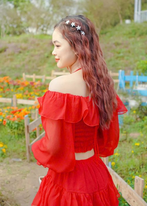 Set Maxi Đỏ Tay Dài Cao Cấp