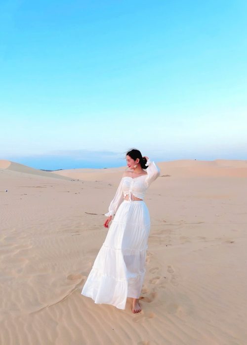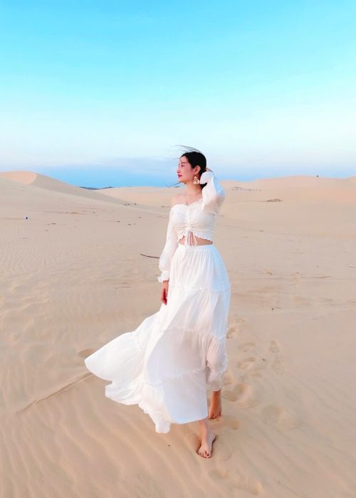 Set Maxi Trắng Trễ Vai Tay Dài Tao Nhã