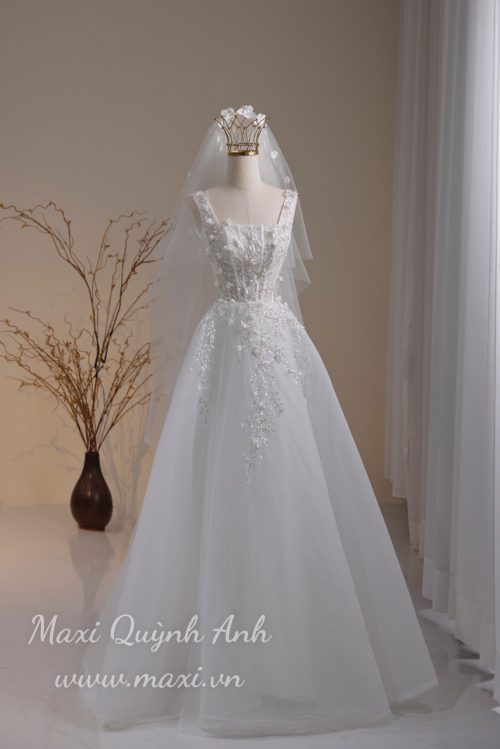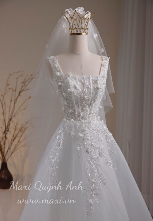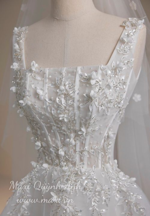 Váy Cưới 2 Dây Thiết Kế Kết Hoa Cao Cấp