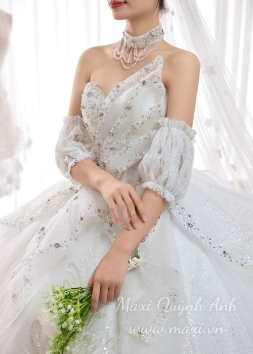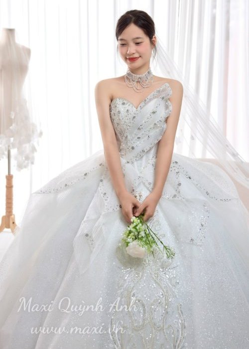 Váy Cưới Ánh Pha Lê Bạc