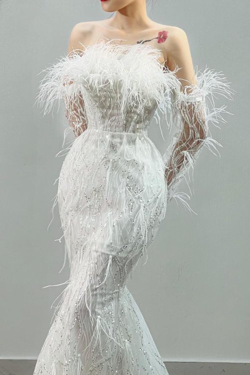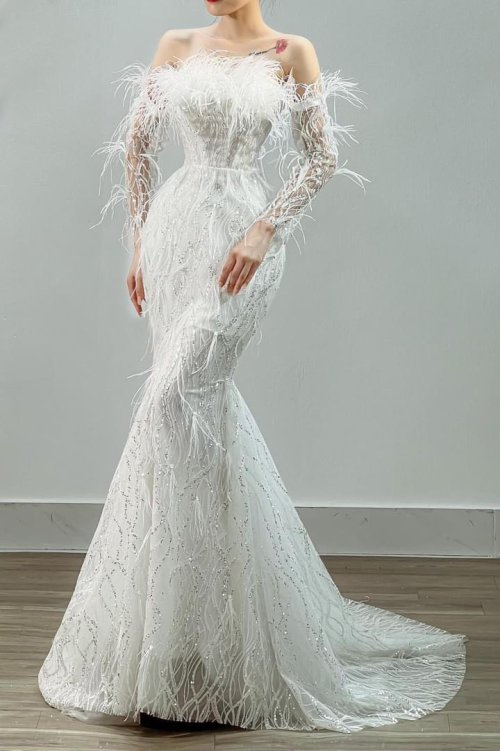 Váy Cưới Body Đuôi Cá Tua Rua Đính Kim Sa
