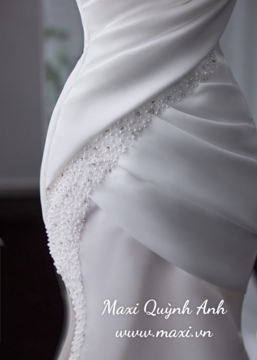 Váy Cưới Body Kết Ngọc Trai Tà Sang Trọng