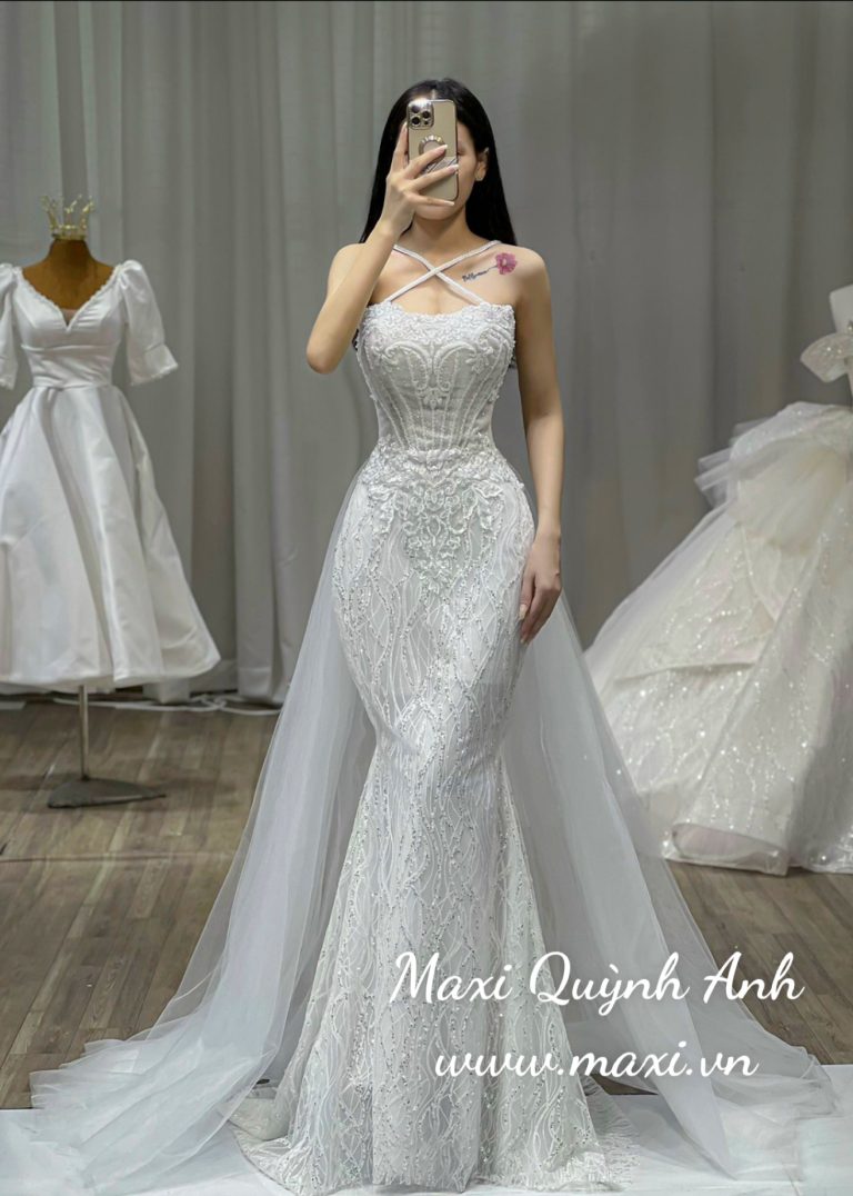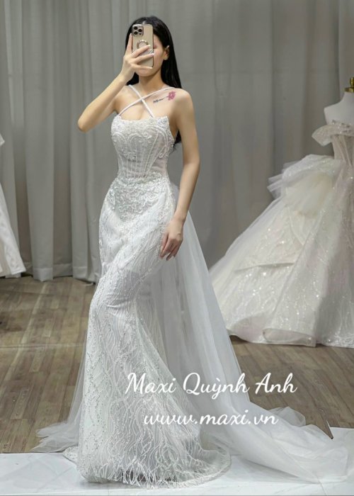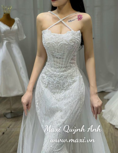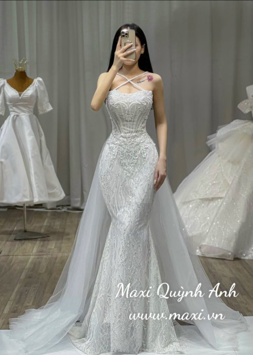 Váy Cưới Body Kim Sa Cổ Yếm Sang Trọng