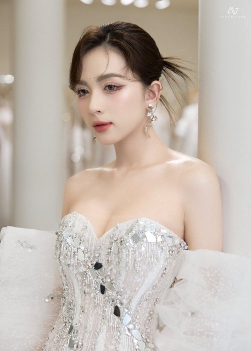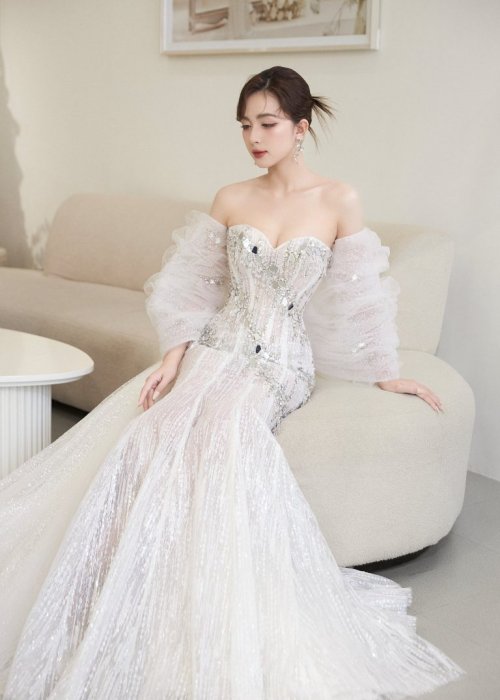 Váy Cưới Body Kim Sa Trễ Vai Voan Phồng Cao Cấp
