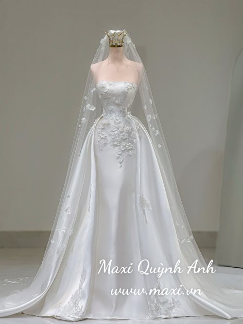 Phù hợp cho các buổi tiệc cưới sang trọng, hoặc tiệc tối với bạn bè, mẫu váy là lựa chọn lý tưởng cho những cô dâu yêu thích sự quý phái nhưng vẫn giữ được nét tinh khôi.