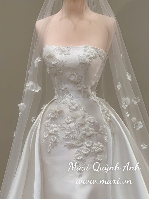 VÁY CƯỚI BODY PHỐI HOA HOÀNG GIA