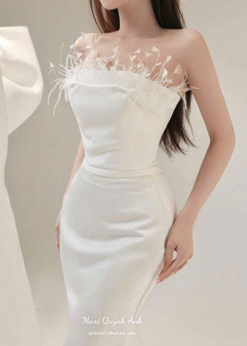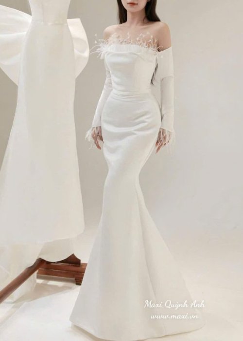 Váy Cưới Body Phi Lông Vũ 2in1 Tao Nhã