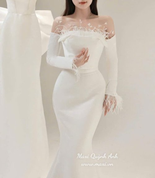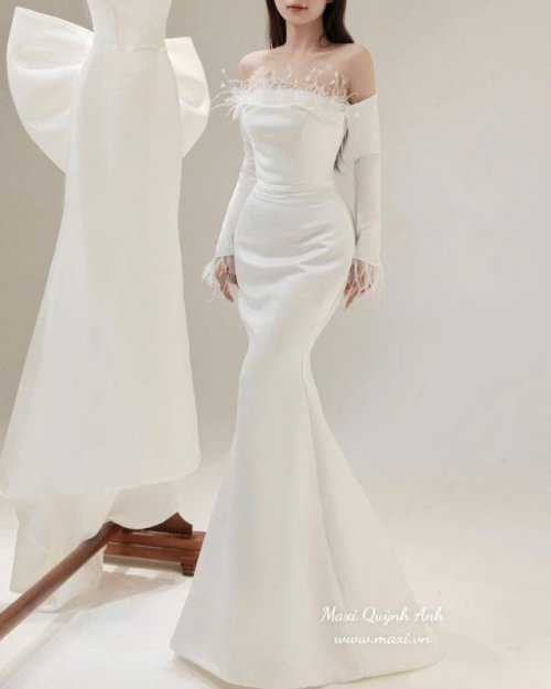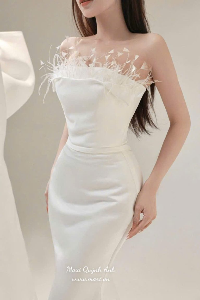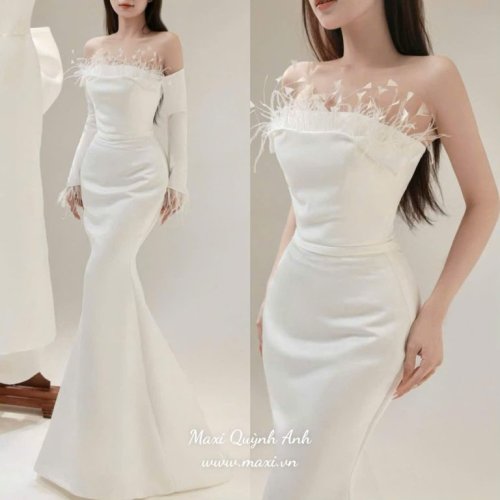 Váy Cưới Body Phi Lông Vũ 2in1 Tao Nhã