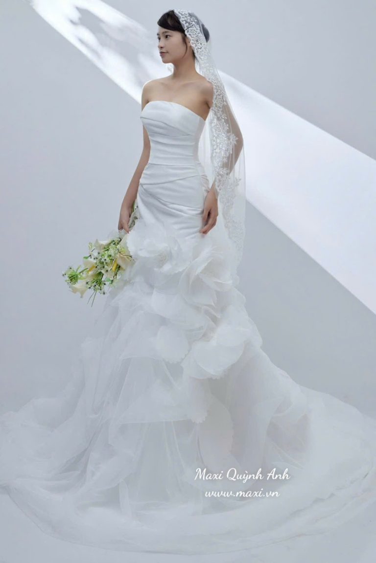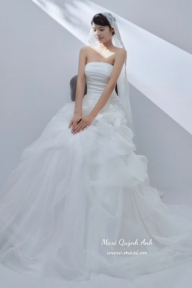 Váy Cưới Body Phối Voan Tùng Xòe Cao Cấp