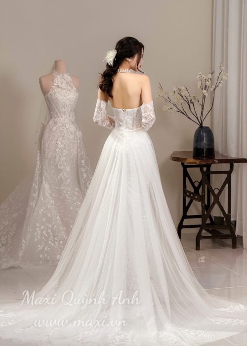 Váy Cưới Body Ren Cup Ngực Kèm Choàng