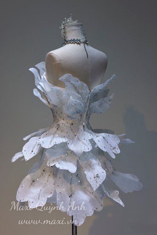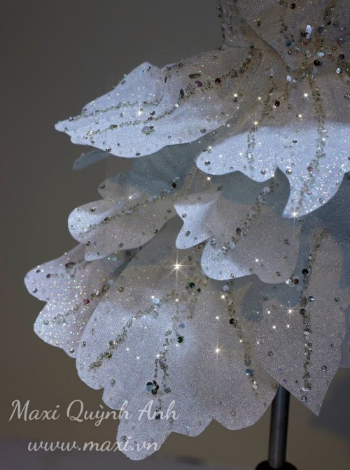 Thiết kế váy bồng bềnh như những đám mây, với những cánh hoa 3D mềm mại, tạo nên vẻ đẹp vừa mơ màng vừa bay bổng. Từng cánh hoa được phủ một lớp kim tuyến nhẹ nhàng, lấp lánh như sương mai dưới ánh nắng. Đây không chỉ là một chiếc váy cưới, mà còn là một tác phẩm nghệ thuật, mang đến cho bạn một vẻ đẹp thanh khiết và đầy chất thơ.