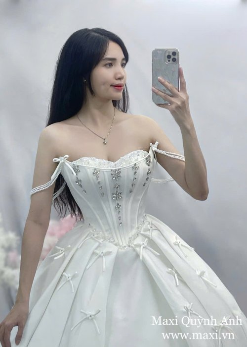 Đây không chỉ là một chiếc váy cưới, mà còn là biểu tượng của sự kiêu sa và hạnh phúc, giúp nàng trở thành tâm điểm trong ngày trọng đại.