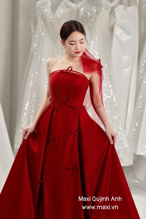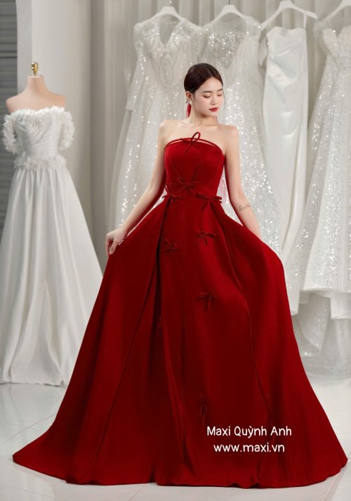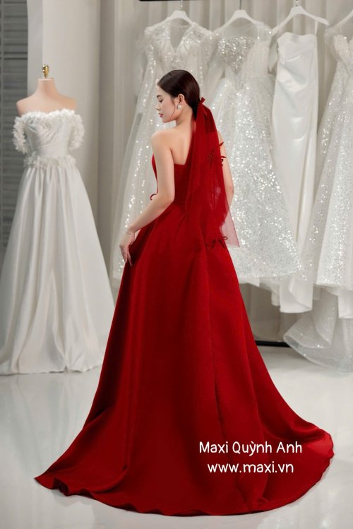 Chiếc đầm mang phong cách Tối Giản Sang Trọng kết hợp nét Thẩm Mỹ Hiện Đại. Màu đỏ đậm sâu sắc và mạnh mẽ thể hiện sự quyến rũ và vị thế của người mặc. Váy tập trung tôn vinh vẻ đẹp tinh tế của chất liệu và đường cắt hoàn hảo, tránh sự cầu kỳ rườm rà. Thiết kế này giúp bạn nổi bật một cách đẳng cấp và quý phái.