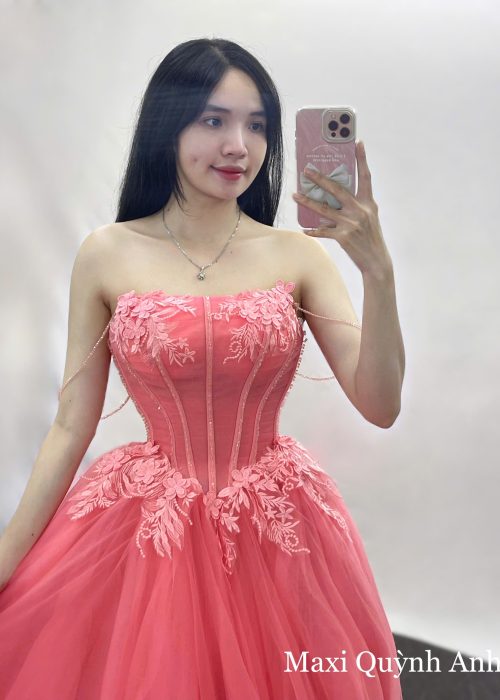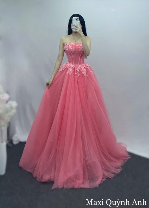 Váy Cưới Cúp Ngực Hồng Ngọt Ngào